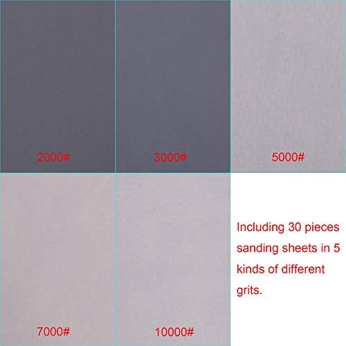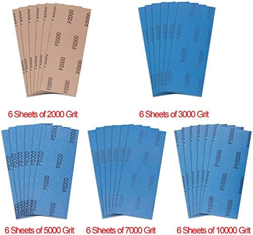 AUSTOR 30 Pieces Wet and Dry Sandpaper Fine Grit 2000 3000 5000 7000 10000 High Grit Sanding Paper Sheets Assortment 9 x 3.6 Inches Abrasive Paper for Automotive Sanding Wood Furniture Finishing