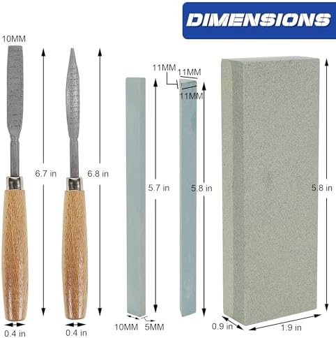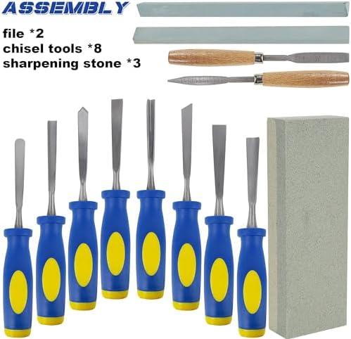 – Set Includes: 13 chisels (various sizes), 2 rasps, and 2 sharpening stones